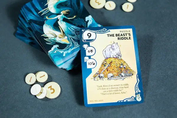 A lo largo de la partida, avanzaréis a través de un mazo de desafíos dinámico, gestionando vuestras cartas de habilidad y tomando decisiones tácticas en cada turno. Solo podréis jugar cartas que coincidan en color con el desafío activo, lo que añade una capa estratégica clave. Además, algunas cartas incluyen doble color o funcionan como comodines, ofreciendo mayor flexibilidad en momentos críticos.